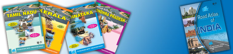 The Road atlases are nothing but an atlas having set of Maps in which more important is given on road connectivity, with its approximate distances with important locations, useful to truck drivers and for those who have fashion in self driving.   It is available as a book for entire India, state wise, each page will have one state, and road atlases are also available for various States of India, these state road atlases will have each page consisting of one District of respective states and a brief write up about the district such as important tourist places etc…